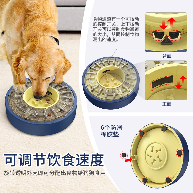 代号:旋转慢食狗碗 这是一款创新设计的狗狗慢食餐具,也是一款真正可以实现狗狗缓慢饮食的狗碗,这款产品可以真正有效的延迟狗狗的进食时间。产品拥有一个超大容量的储粮仓,储粮仓可以放入大约500克的食物(本产品只支持使用宠物干粮或者零食,不支持任何的湿粮和罐头)。将食物加入储粮仓,狗狗通过自己的操作可以获得食物的奖励。通过产品附带的调节功能,可以将狗狗的进食时间控制在5-60分钟。缓慢的饮食习惯可以提升狗狗的肠胃健康与身体素质,并能缓解狗狗的无聊情绪,消耗狗狗的多余精力,而且这个产品还可以作为一个益智玩具给狗狗使用。