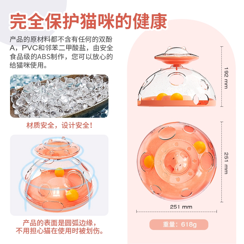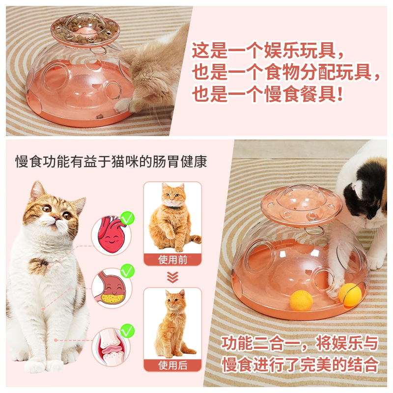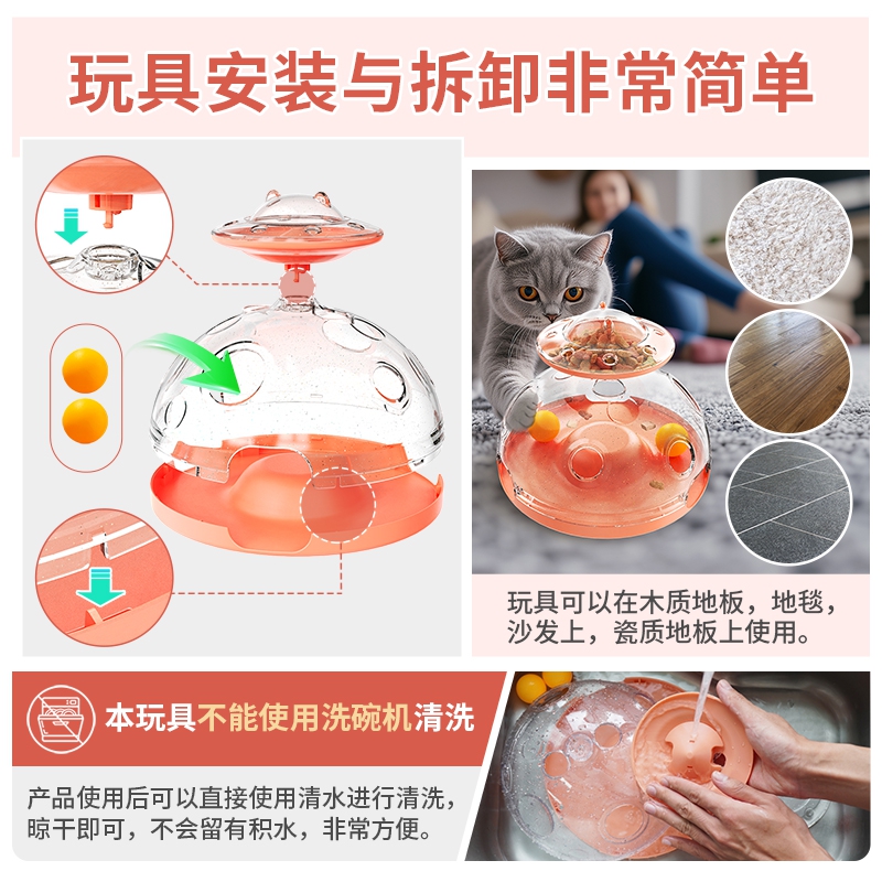 代号:猫咪百宝箱 这是一款创新设计的多功能室内猫咪玩具。玩具集合了掏洞游戏、旋转和食物分配等功能,给猫咪多种快乐。猫咪在玩耍玩具的过程中可以消耗多余的精力,缓解焦虑,是无聊猫咪的完美伴侣。玩具具有食物分配功能,可以作为慢食餐具给猫咪使用。猫咪通过玩耍玩具的过程中获得食物奖励,游戏的过程可以引导猫咪进行思考,让猫咪的大脑与身体同时运动起来,促进大脑发育。并可以通过获取食物的过程来缓解焦虑,让猫咪可以更好的融入家庭生活。这款玩具适合任何年龄段的猫咪,也可以多只猫咪一起玩,还可以在猫咪无聊或者没有主人陪伴的时刻给猫咪带来快乐,防止猫咪在家中对家居、衣服等物品进行破坏。